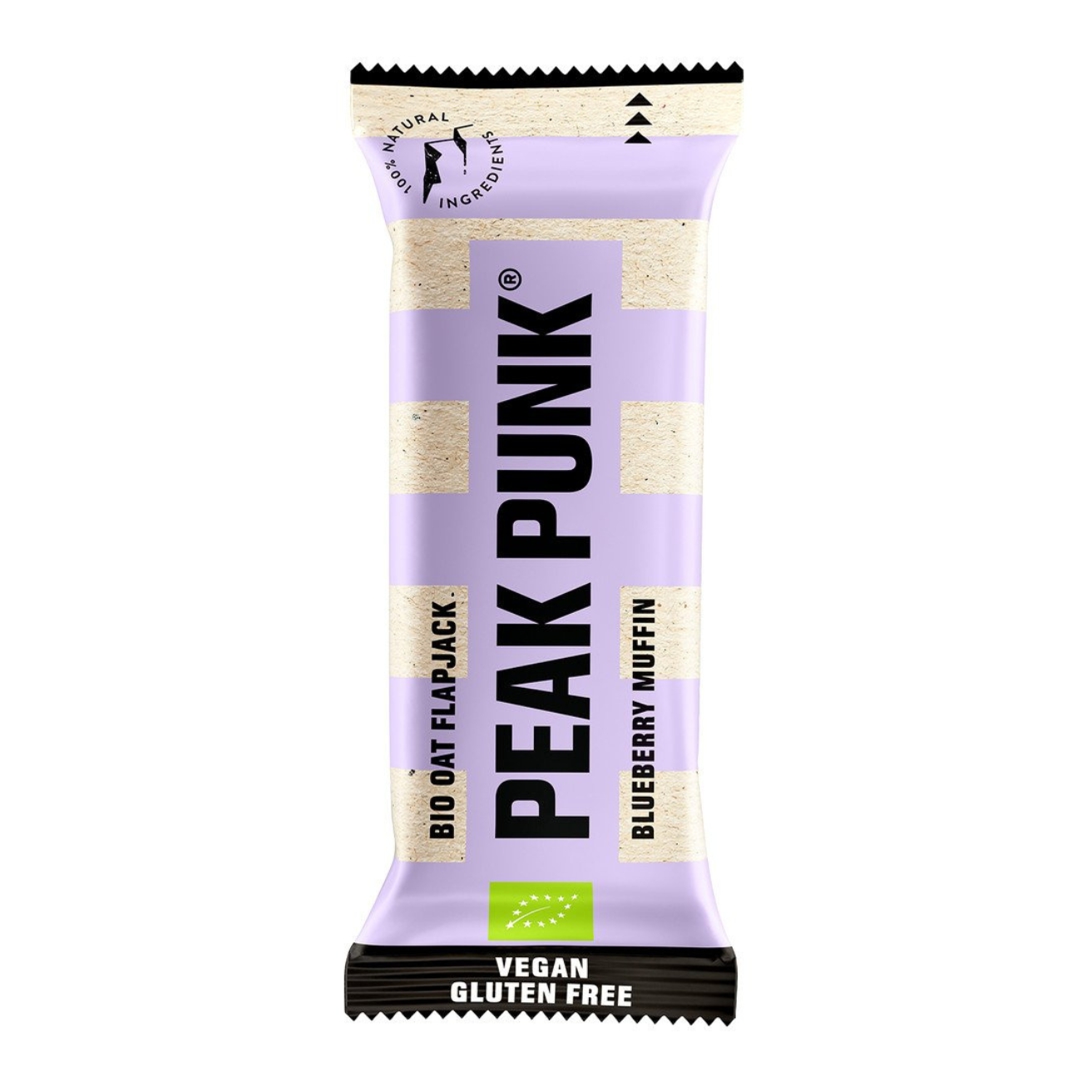« Le nouveau Organic Oat Flapjack Blueberry Muffin de Peak Punk a un goût de folie. Risque d’addiction garanti. Tu dois d’abord gagner cette barre sportive végétalienne avec de vraies gouttes de sueur – mais tu aimes ça. Le tout avec un vrai goût de fruits de plus de 6 % de myrtilles cueillies à la main. Et oui, tu obtiens ici 8,1 g d’excellentes protéines végétales. Si tu aimes les myrtilles juteuses et douces et le chocolat, le Blueberry Muffin est ton premier choix. »